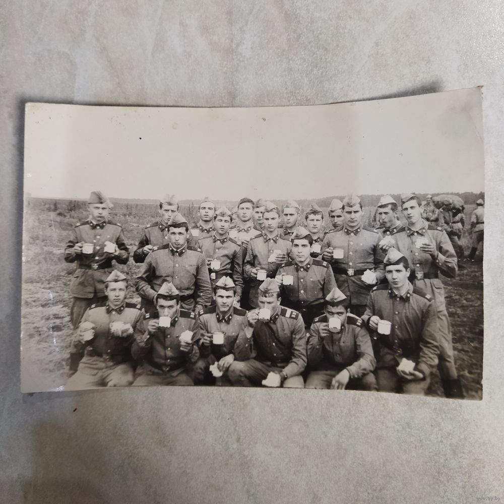 Фотография. История СССР в лицах. Солдаты Внутренних войск МВД СССР на "целине". Обед в поле.