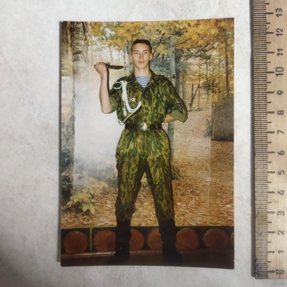 Фотография. Увлеченным униформистикой. Солдат в форме. Нарукавный знак образца 1996 г.