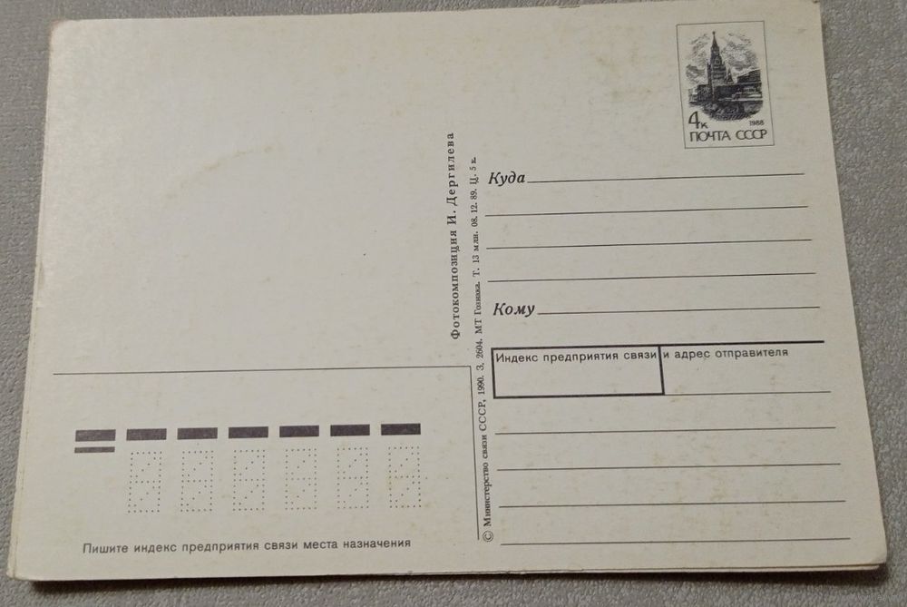 Фотокомпозиция И.Дергилева. С новым годом. 1989. Маркированная. Минсвязи СССР. Чистая. Передача в Витебске возле ратуши. Пересылка в другой город за счёт покупателя по тарифам Белпочты либо Европочты после 100% предоплаты.