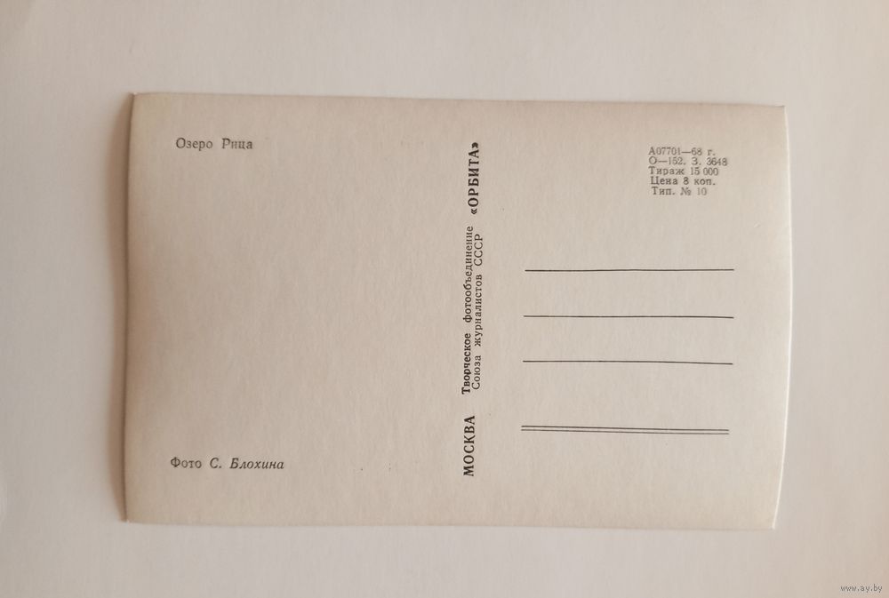 Фотооткрытка. Озеро Рица. 1968 г. Чистая