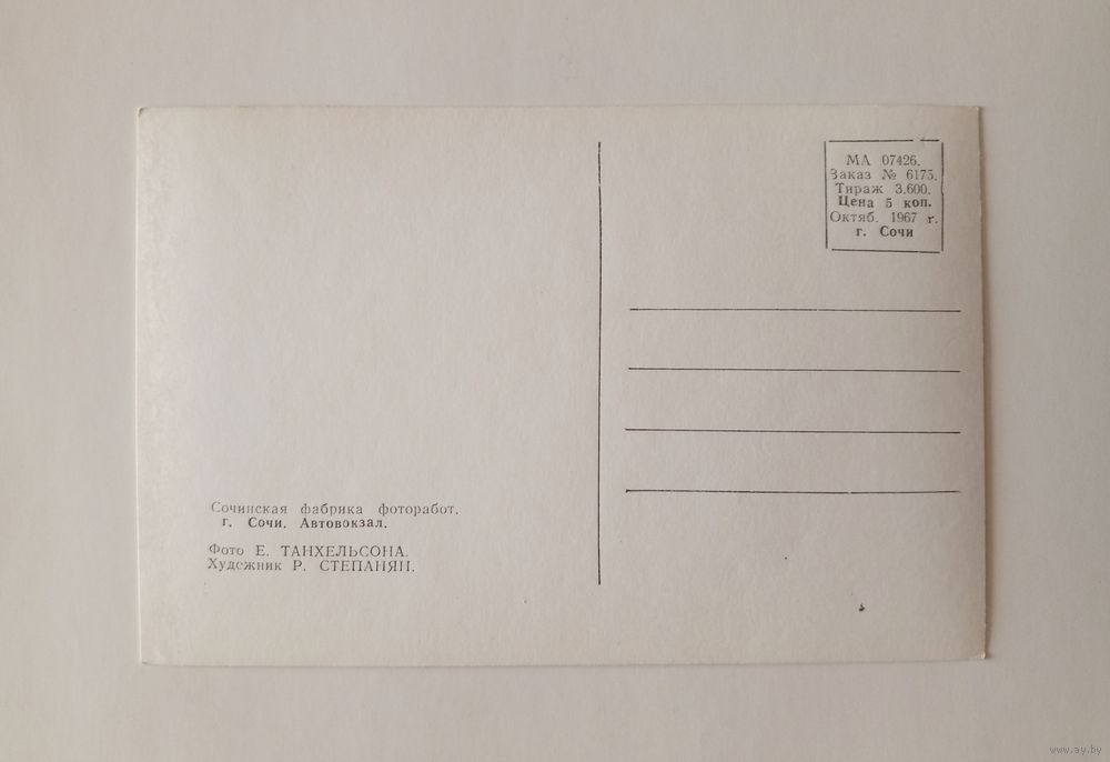 Фотооткрытка. Сочи. Автовокзал. 1967 г. Чистая