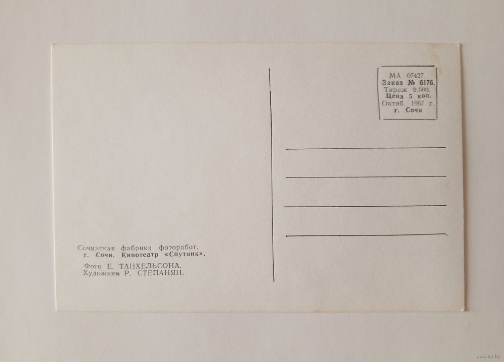Фотооткрытка. Сочи. Кинотеатр "Спутник". 1967 г. Чистая