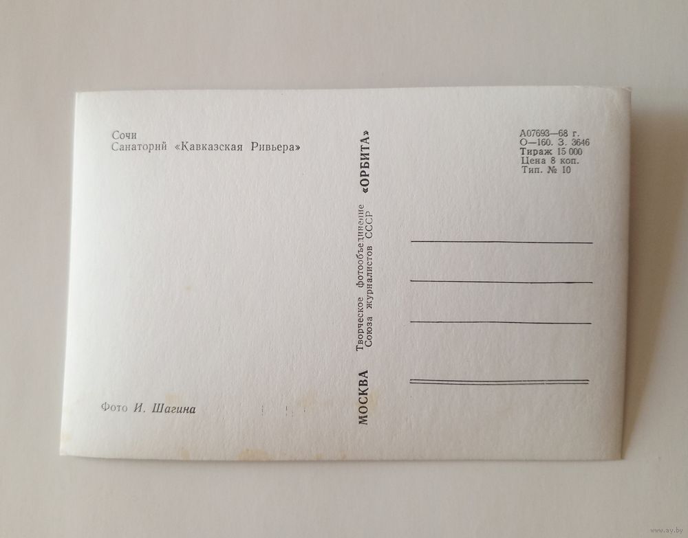 Фотооткрытка. Сочи. Санаторий "Кавказская Ривьера". 1968 г. Чистая
