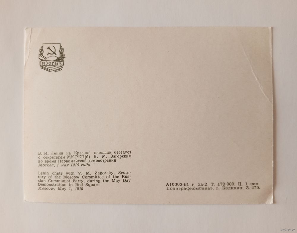 Фотооткрытка В.И.Ленин на Красной площади... Москва, 1 мая 1919 года. Изогиз 1961 год. Чистая.