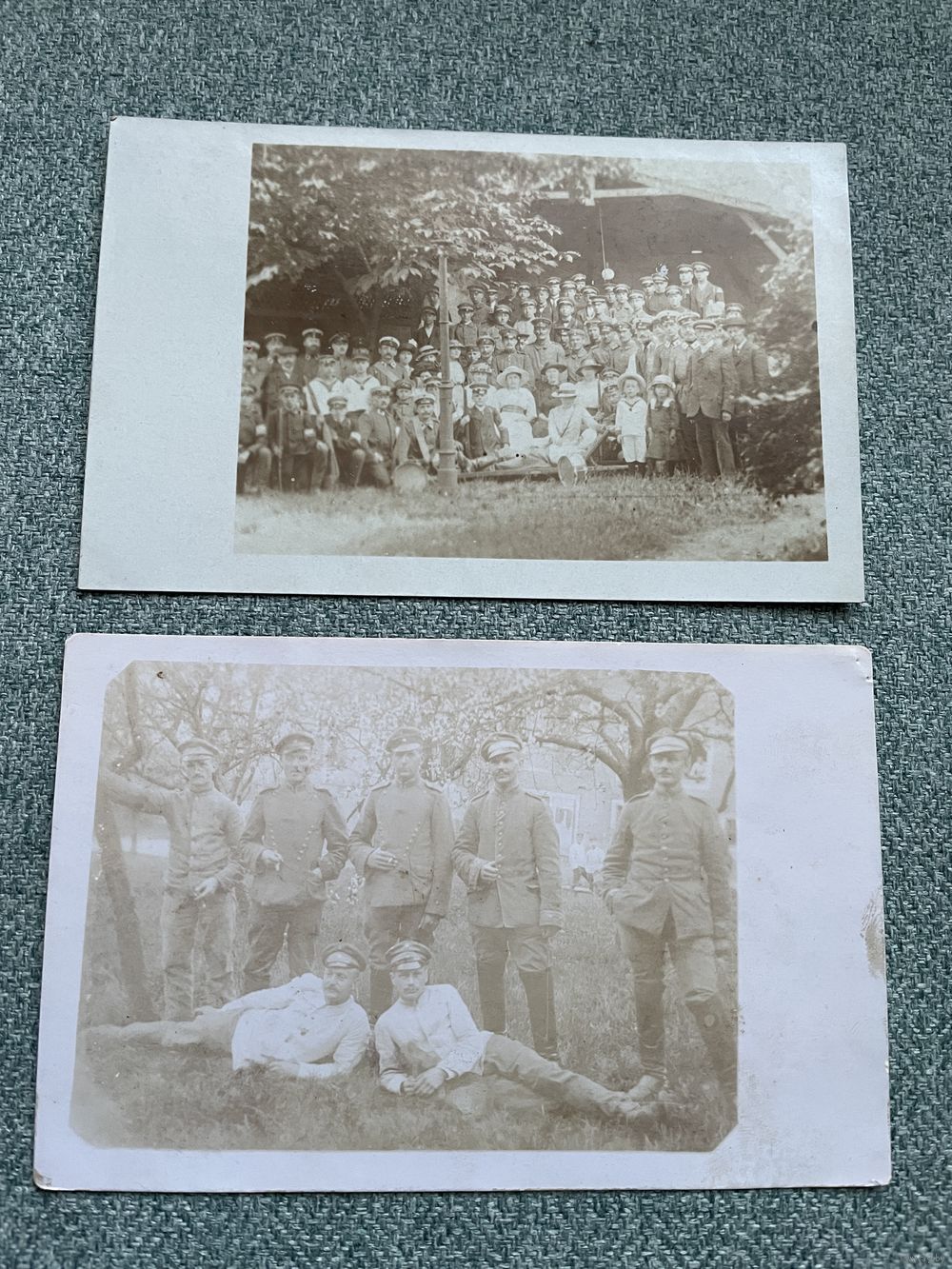Фотооткрытки 1 Мировая война / Немецкие офицеры и солдаты на отдыхе / униформа полевая и медицинская ? / подписана Buzan (Rumanien)