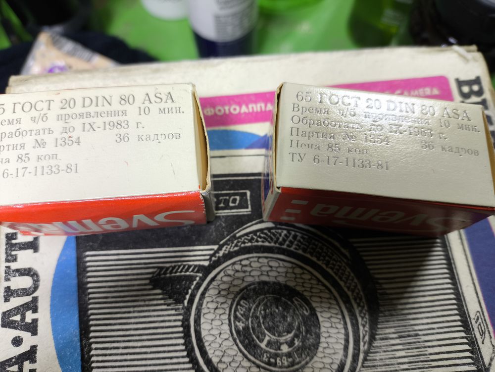 | Фотоплёнка упакована коробочку, бумагу и в тубус | |