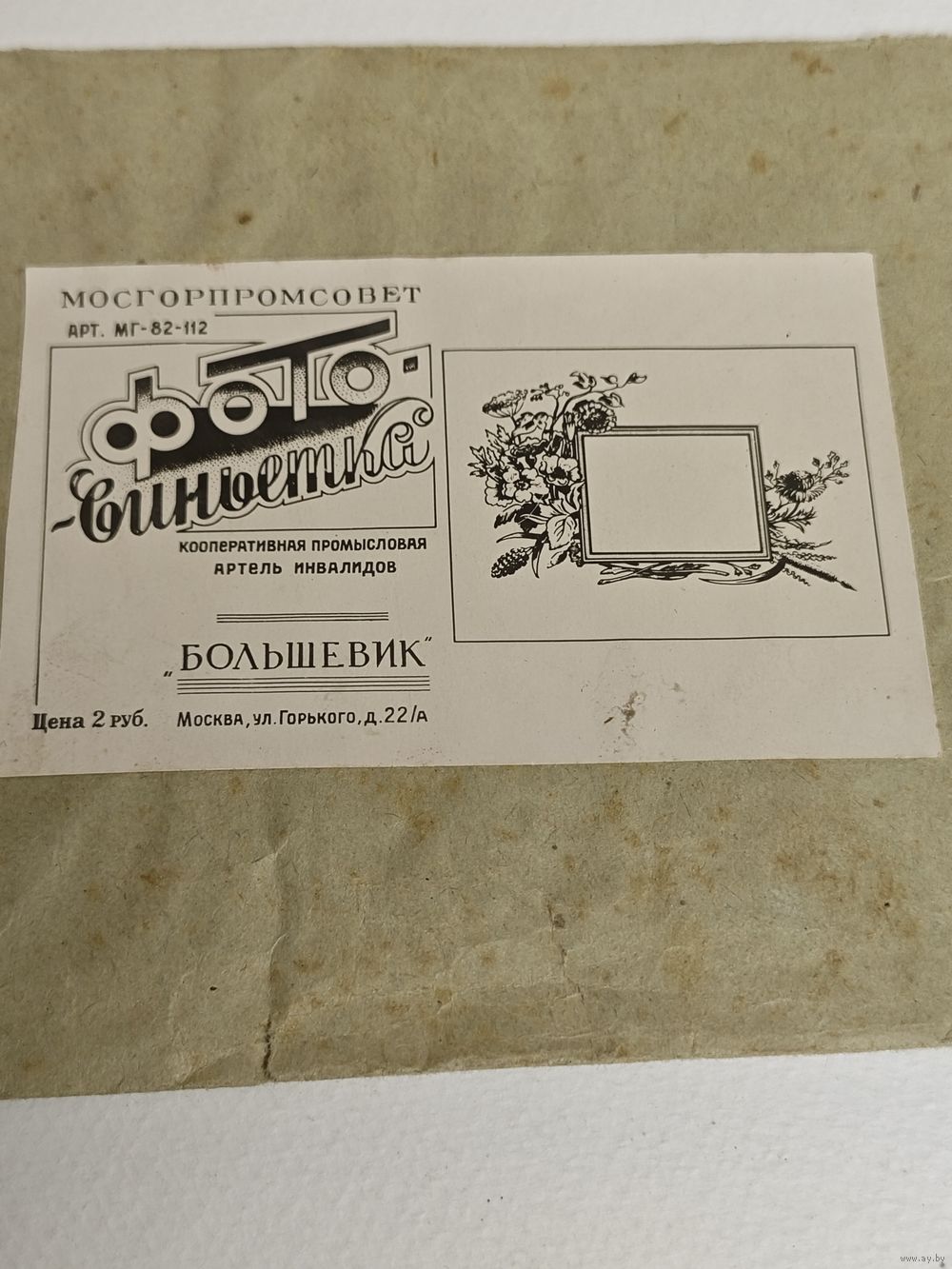 Фотовиньетка, изготовленная кооперативной промысловой артелью инвалидов "Большевик", 50- е годы. СССР. Состояние на фото.