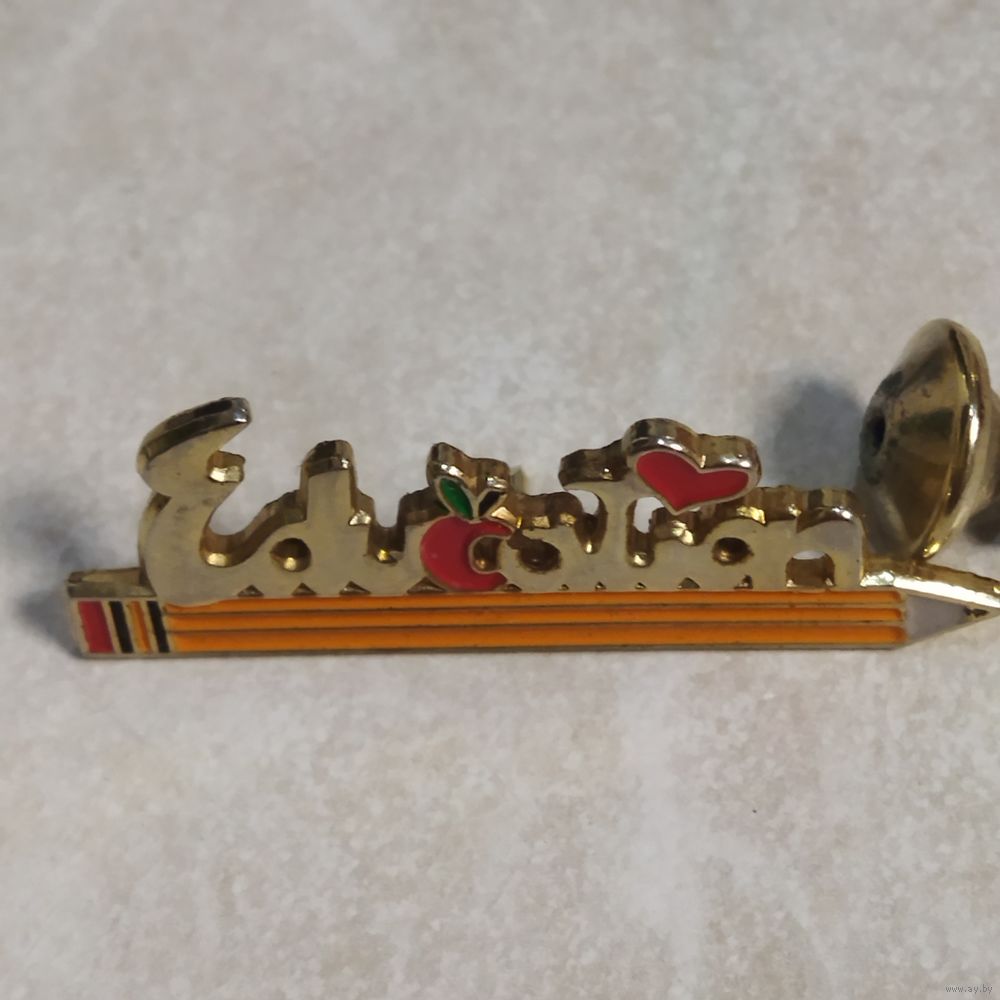 Фрачный, лацканный знак для учителей. " Образование". "Education". Тяжёлый, цанга.