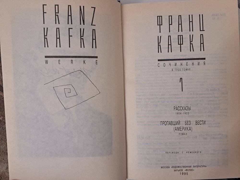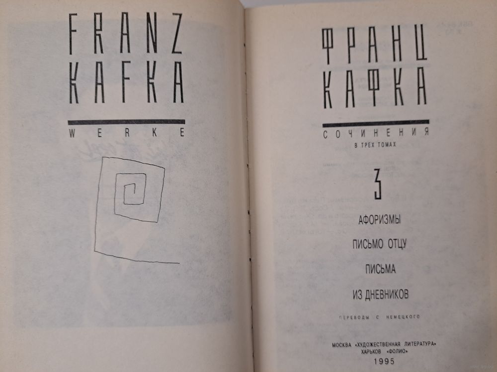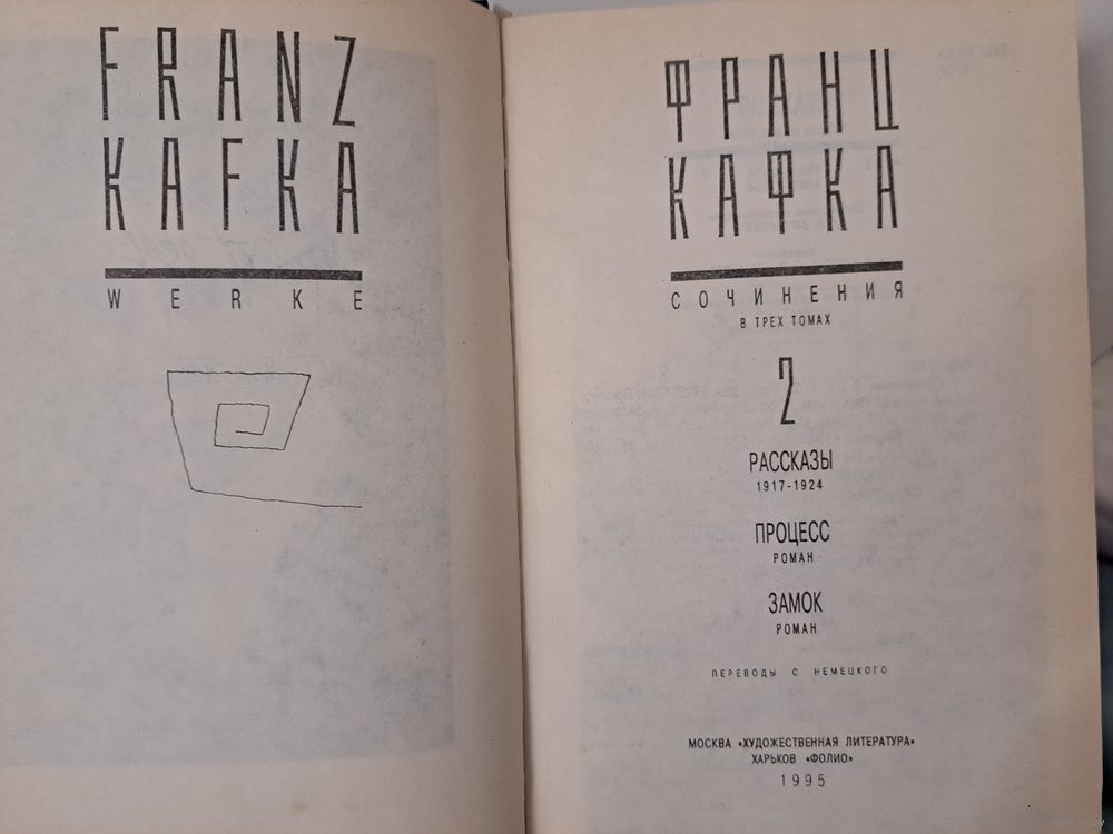 Франц Кафка Сочинения в трёх 3-х томах. 1995 г.