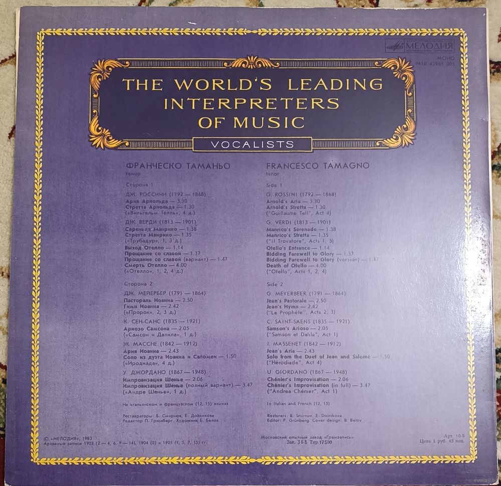 | Исполнитель | Francesco Tamagno |