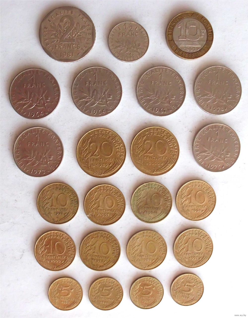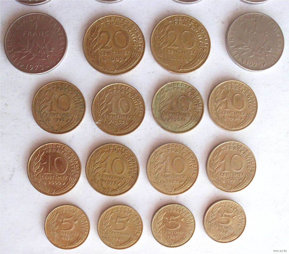 10 сантимов - 1964, 1967, 1977, 1983, 1992, 1997, 1998, 2000