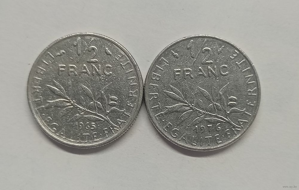 Франция 1/2 франка, 1965 год.1976 год
