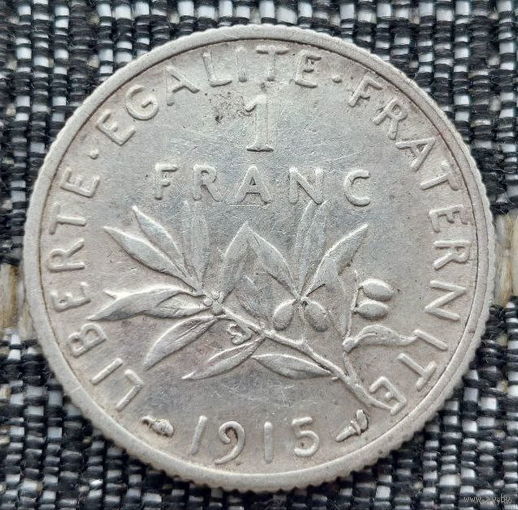 Франция 1 франк 1915 год, AU. I Мировая война. Серебро. Сторгуй за свою цену, предложи обмен!