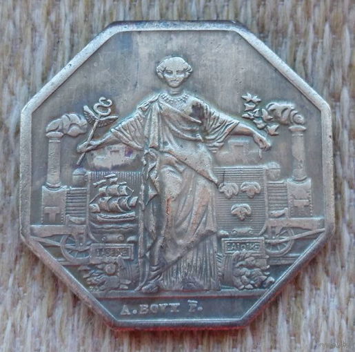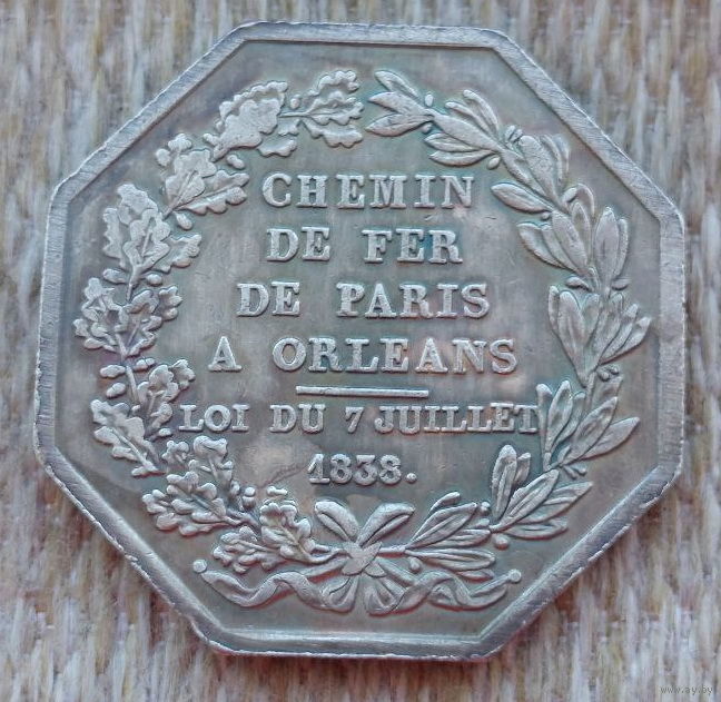 Франция 1 франк. Мельхиор! Париж - Орлеан. Паровозы. Железная дорога. Городской нотгельд. Распродажа!