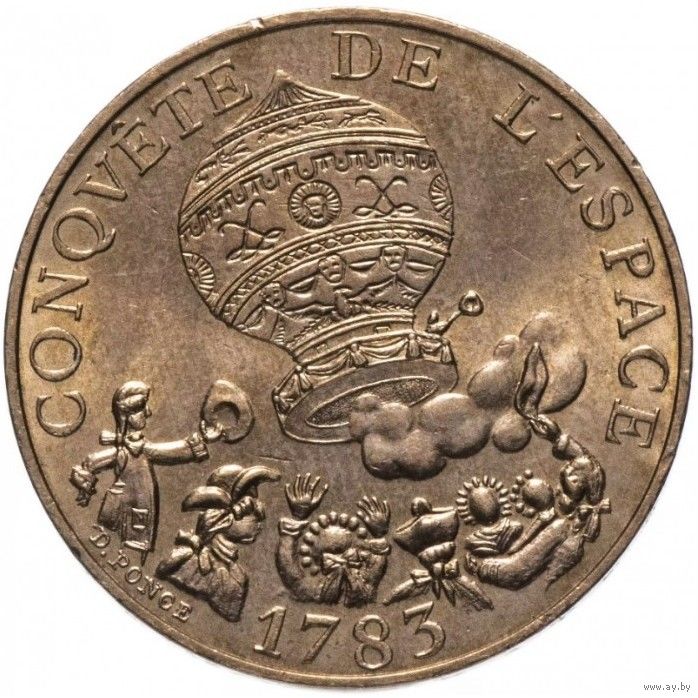 Франция 10 франков 1983 200 лет первому полету на шаре UNC