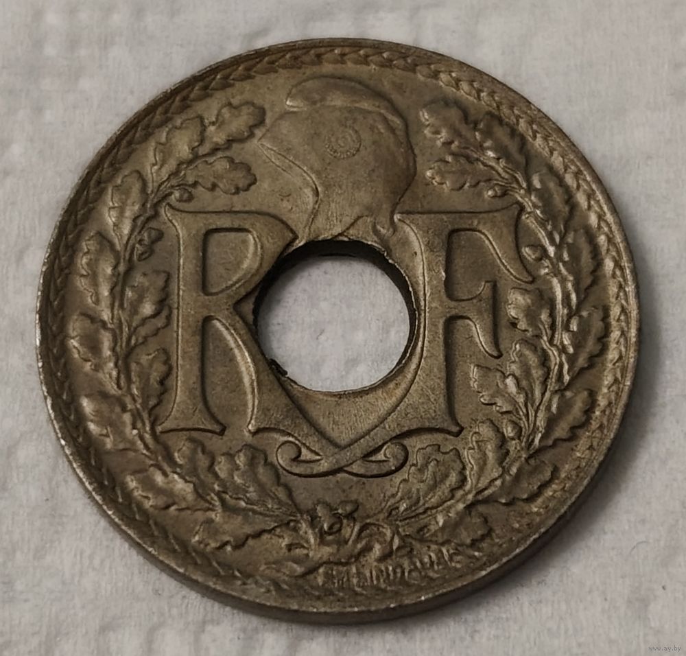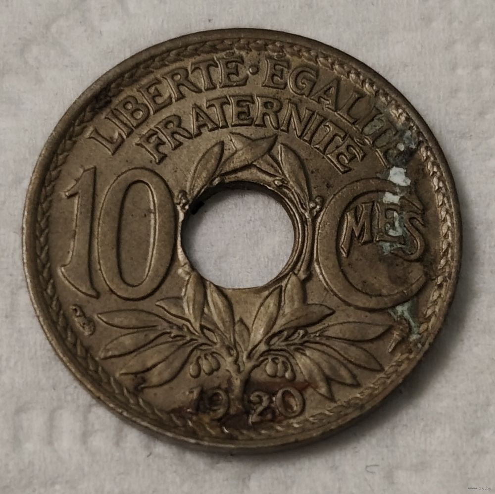 Франция 10 сантимов, 1920 Отверстие в центре (2-7-96)