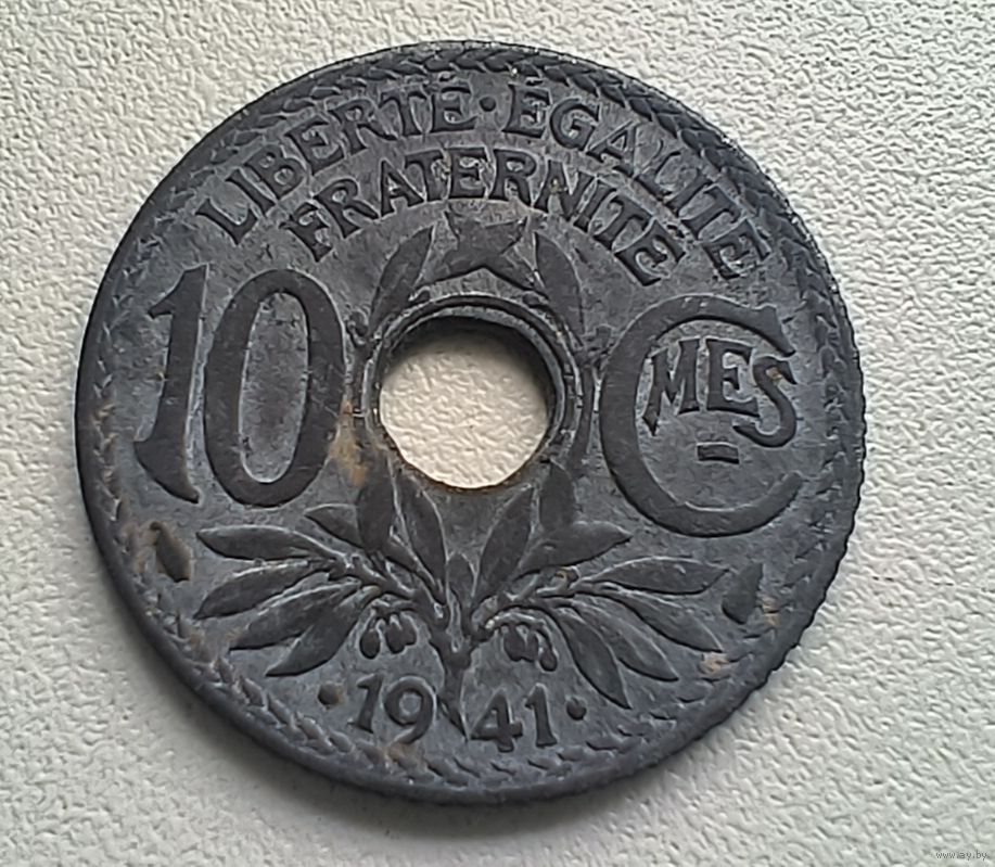 Франция 10 сантимов, 1941 подчер. + . . 1-2-31