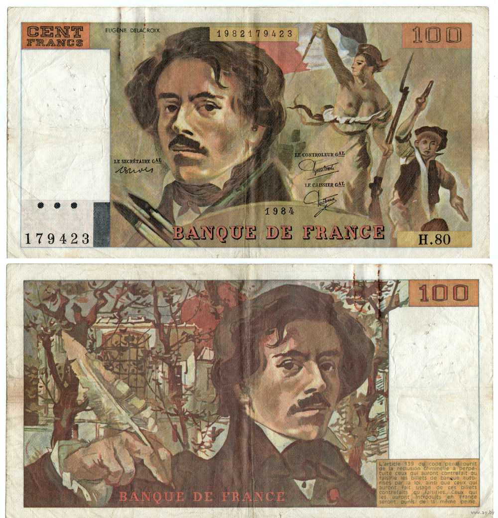 ФРАНЦИЯ 100 Франков 1984 г., P-154b (Эжен Делакруа)
