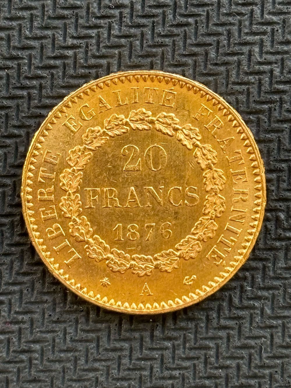 Знаменитая французская золотая монета 20 франков также известна как "Ангел удачи". Считается, что монета приносит удачу, везение и богатство своему владельцу. Эта золотая монета заявляет о Франции как об одной из великих мировых держав XIX и XX веков. Французские золотые 20-франковые монеты были стандартизированы и утверждены императором Франции Наполеоном Бонапартом. Эти монеты стали стандартом золотых монет в Европе. Наполеон Бонапарт утвердил, что каждая 20-франковая золотая монета должна весить 6,45 грамма и содержать не менее 90% или 5,80 грамма чистого золота.