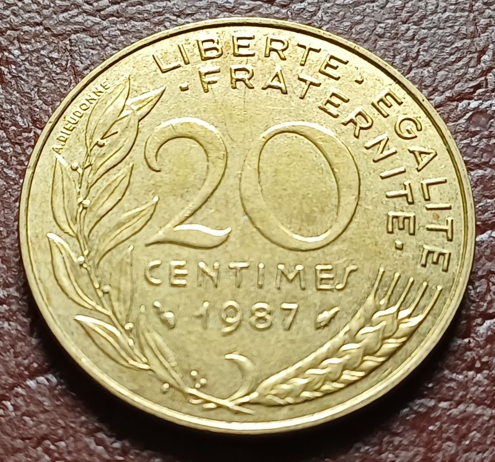 Франция 20 сантимов, 1987 ( 1-8-8 )