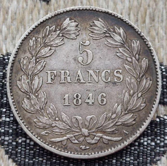 Франция 5 франков 1846 года, А. Париж. Луи Филипп I. Серебро 900. Сторгуй за свою цену, предложи обмен! S120