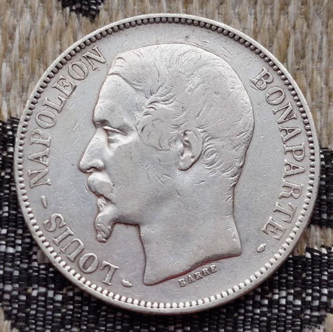 Франция 5 франков 1852 года, А. Париж. Луи Наполеон Бонапарт. Серебро 900. Сторгуй за свою цену, предложи обмен! S120
