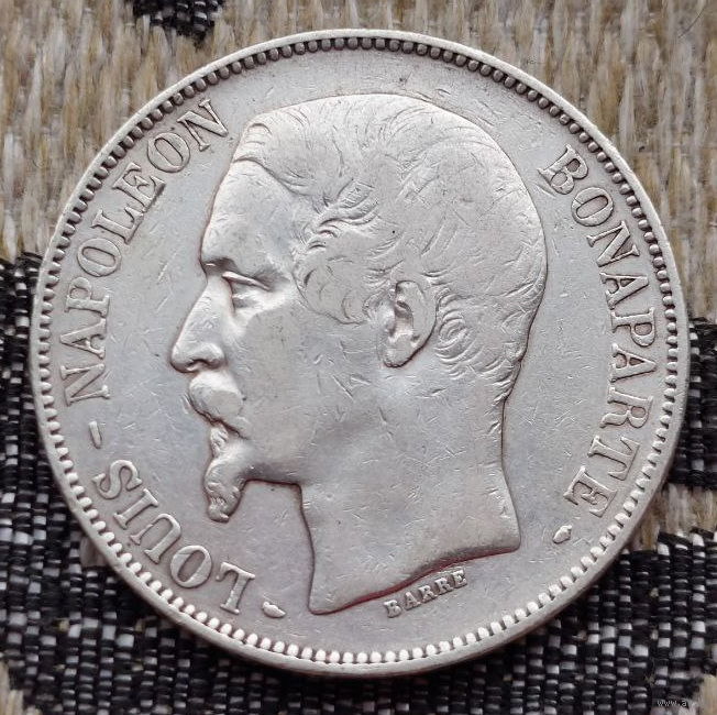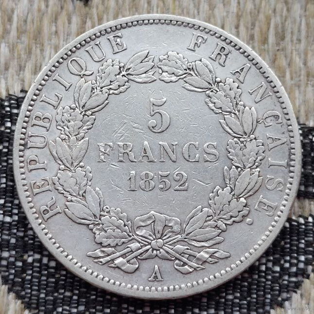 Франция 5 франков 1852 года, А. Париж. Луи Наполеон. Серебро 900. Сторгуй за свою цену, предложи обмен! Y