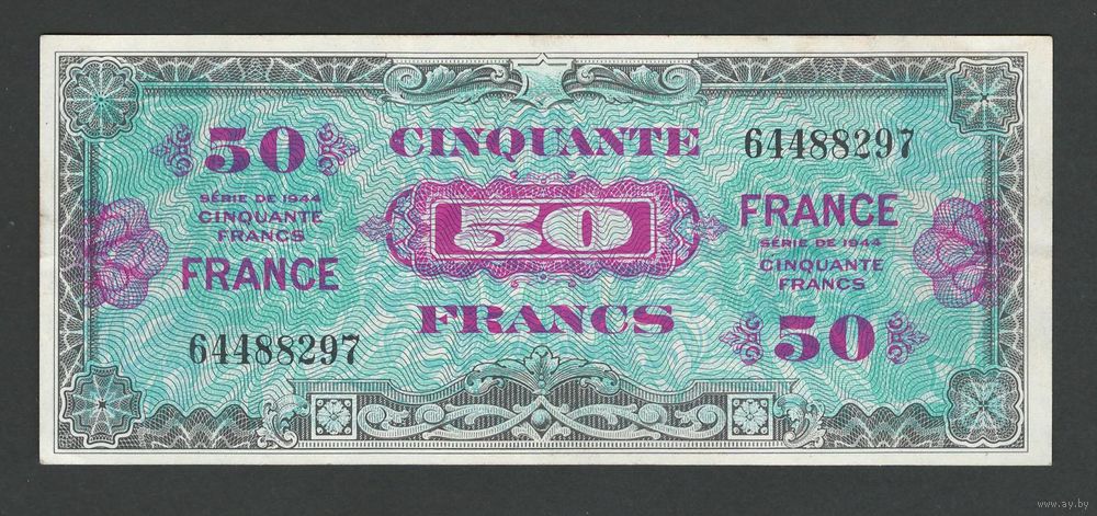 Франция 50 франков 1944 года. Тип Р-122a. Состояние XF+