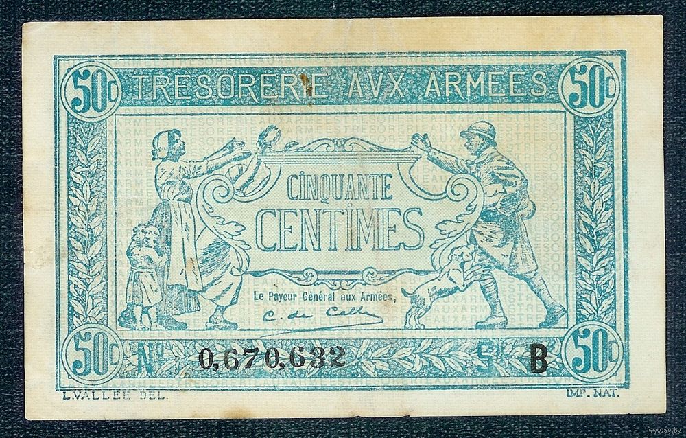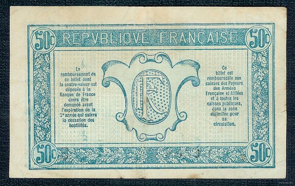 Франция 50 сантимов 1916 - 1917 год. Первая мировая война, Армейские деньги "Tresorerie aux Armees" - RедкаЯ -