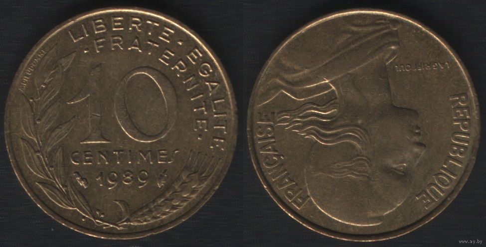Франция _km929 10 сантим 1989 год (nf01