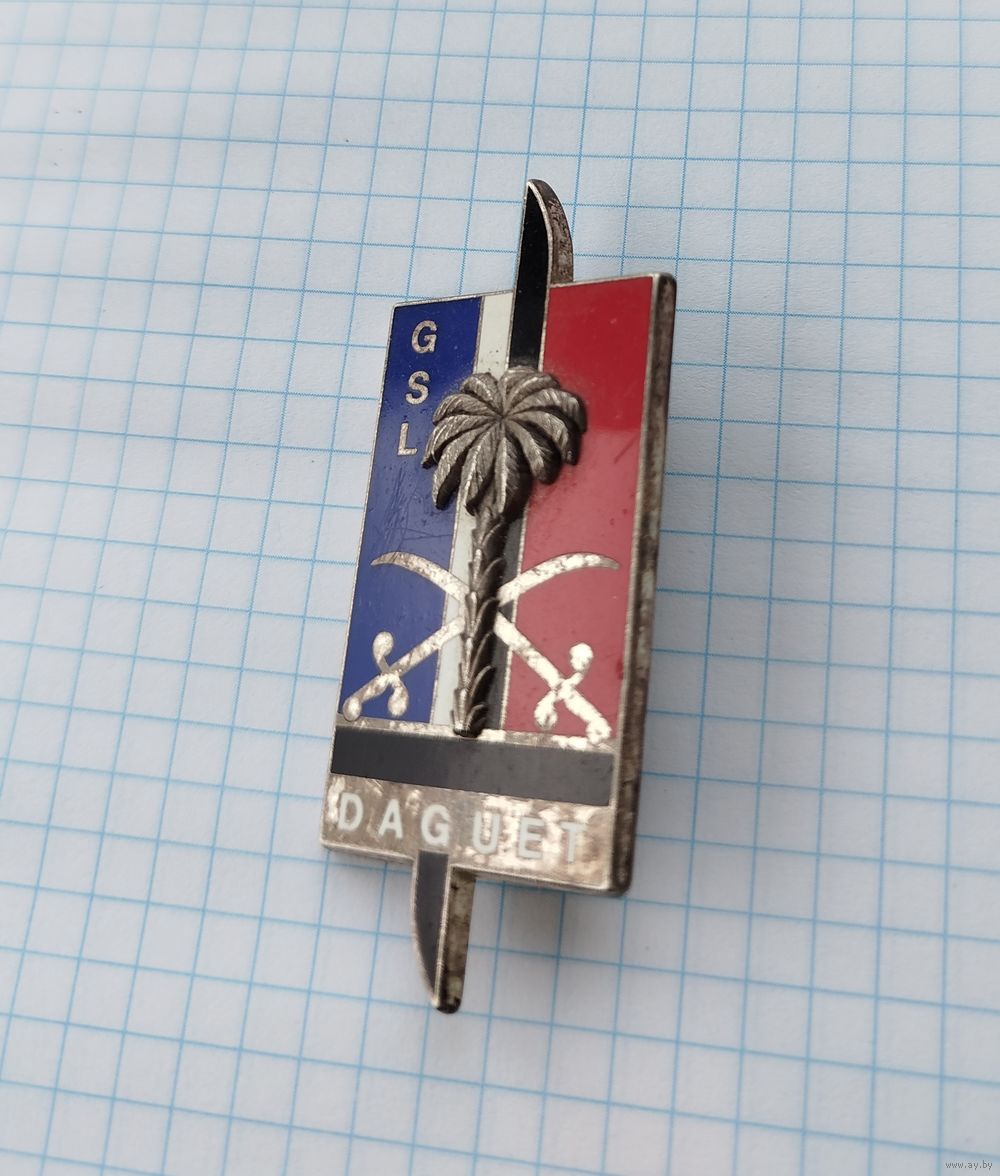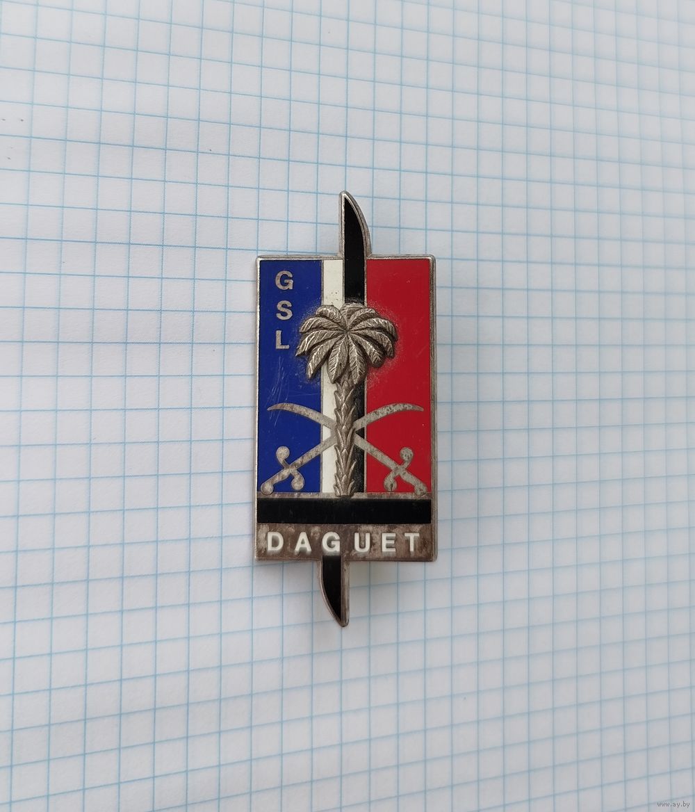 На изображении представлен значок Groupe de Soutien Logistique (GSL), который использовался французскими войсками во время операции «Даге» (французское участие в войне в Персидском заливе, 1990–1991 годы).