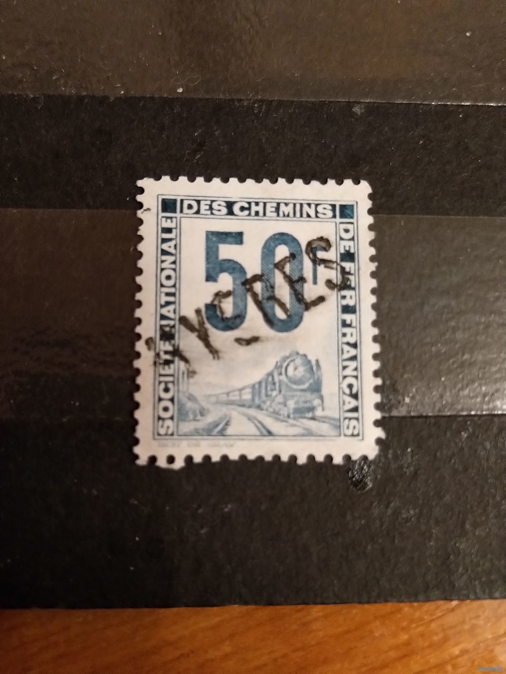 Франция марка оплаты пересылки посылок (пакетов) по железной дороге поезд паровоз Ивер 30 оценка 11 евро без дыр (3-7)