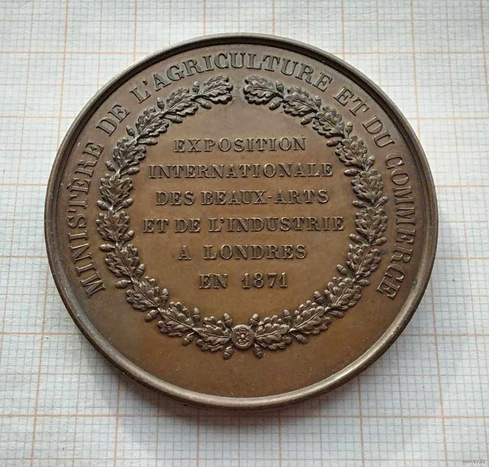 Франция. Международная выставка изящных искусств и промышленности в Лондоне 1871 г. Медь. Клеймо. Диаметр - 50 мм. Вес - 57 гр.Оригинал.Оплата на карту Беларусбанка.