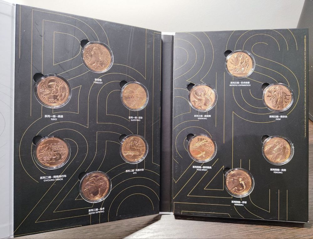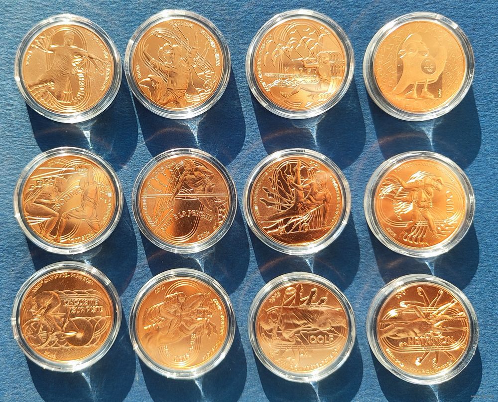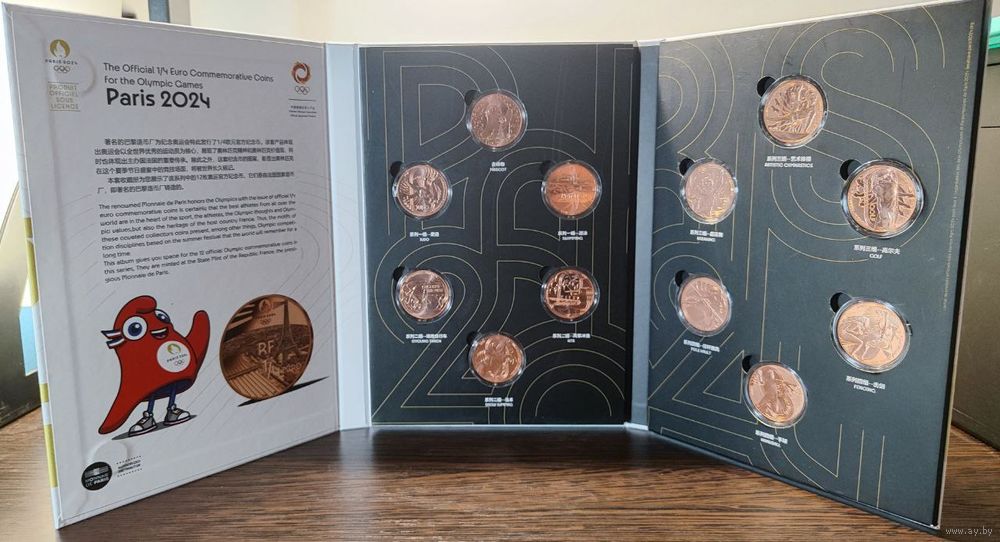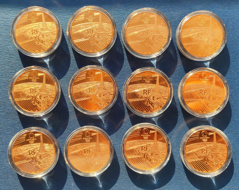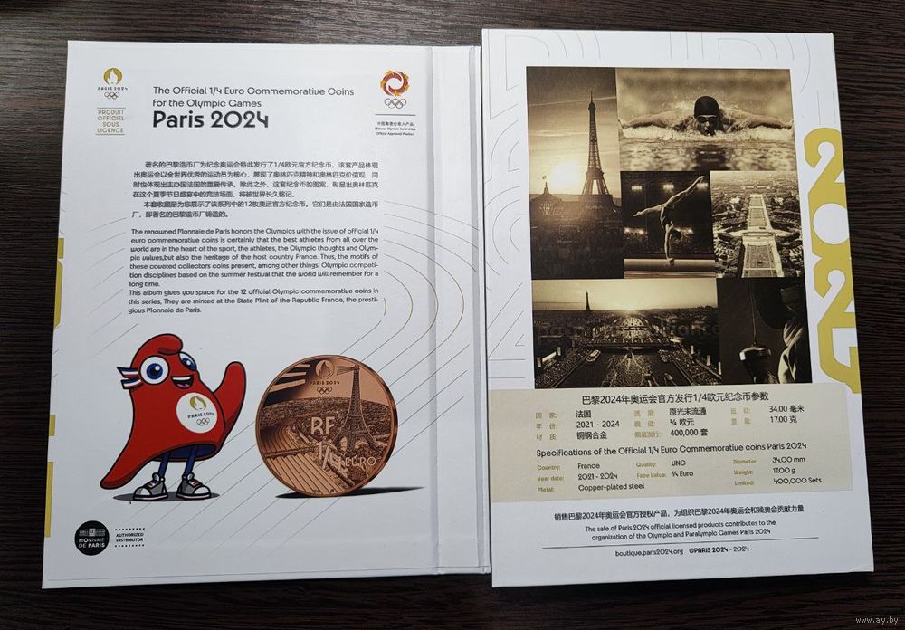 Франция, набор из 12 монет 1/4 евро, Олимпиада-2024 в Париже, медь, в буклете, UNC
