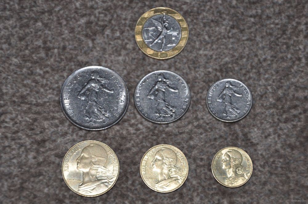 Франция. Набор из 7 монет (10, 5, 1, 1/2 франков, 20, 10, 5 сантимов)