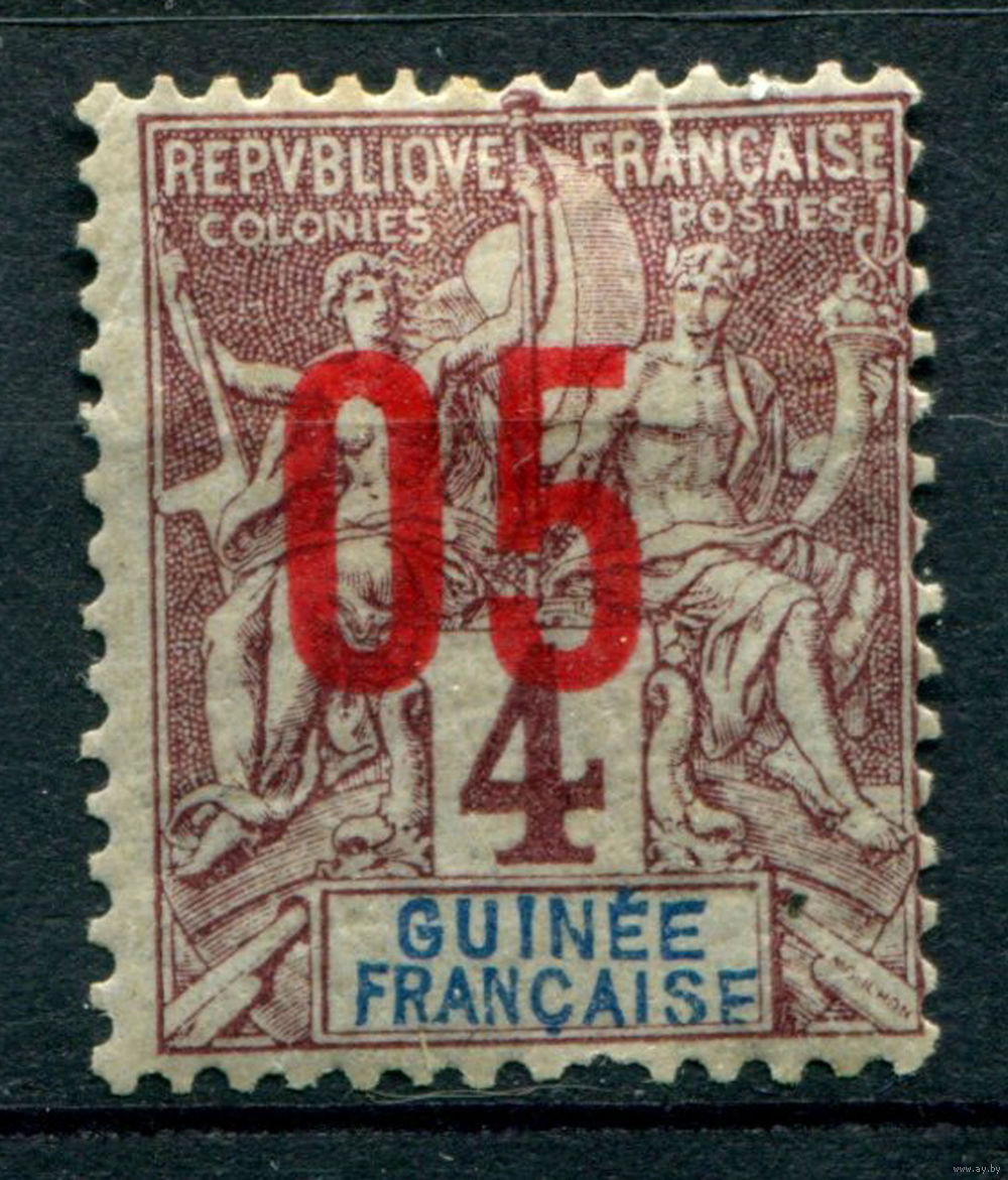 Французская Гвинея - 1912г. - аллегория, надпечатка 05 на 4 с - 1 марка - MH с потрескавшимся клеем [Mi 49]. #4-W1-113-A-1