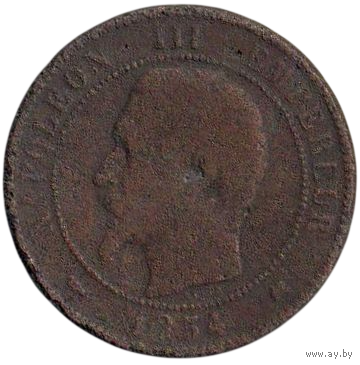 Французская Империя (ІІ Империя. Франция). 10 сантимов 1854 К (Бордо).