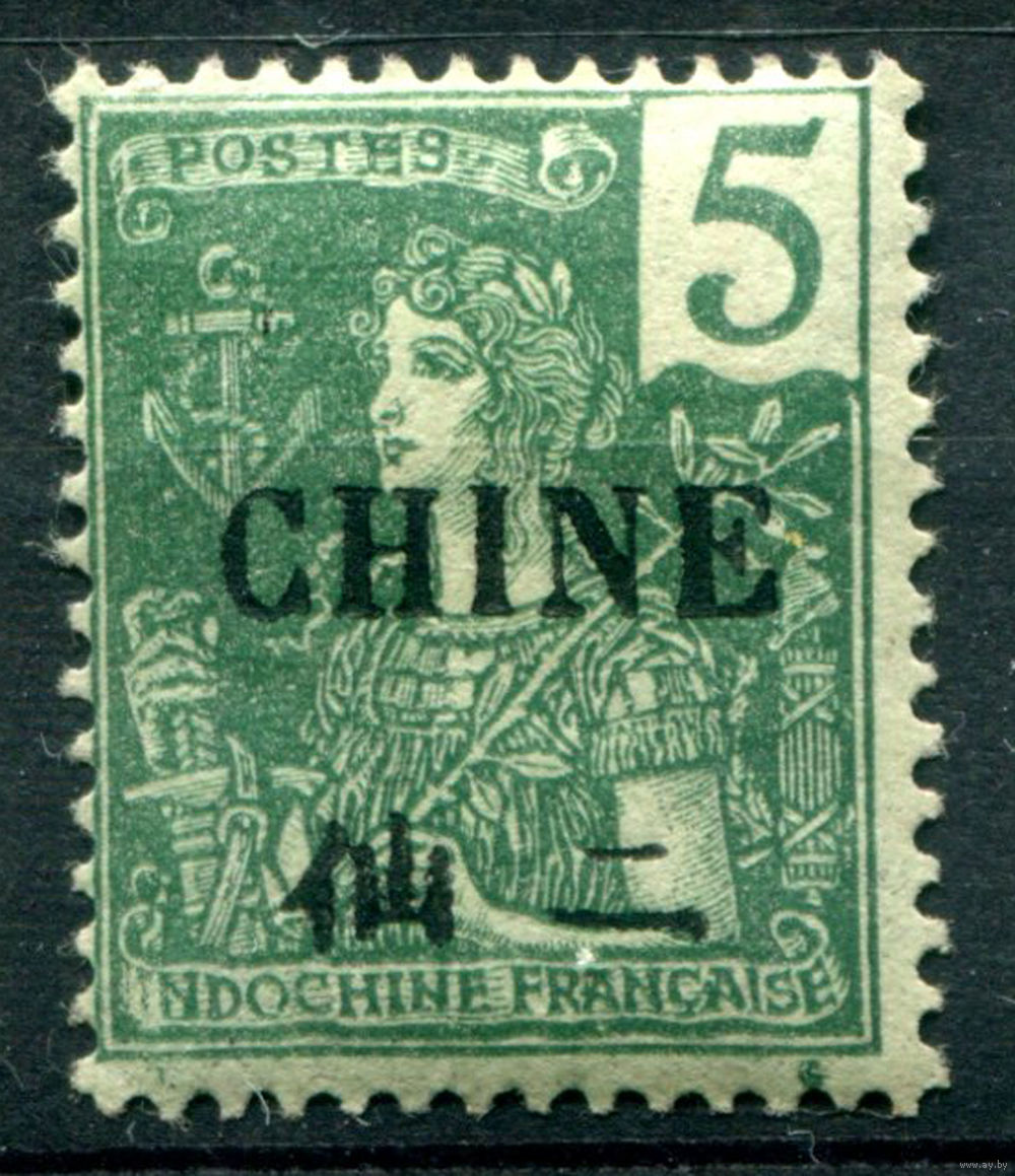 Французская индокитайская почта в Южном Китае - 1905г. - местные мотивы, надпечатка CHINE, 5 с - 1 марка - MH [Mi 20]. #4-W1-113-A-1