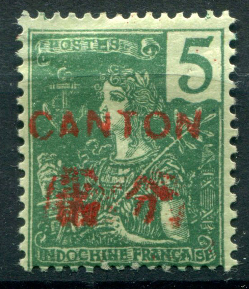 Французская индокитайская почта в Южном Китае - 1906г. - местные мотивы, надпечатка CANTON (Гуанчжоу), 5 с - 1 марка - MH, есть небольшое утончение верхнего левого уголка [Mi 38]. #4-W1-115-A-1