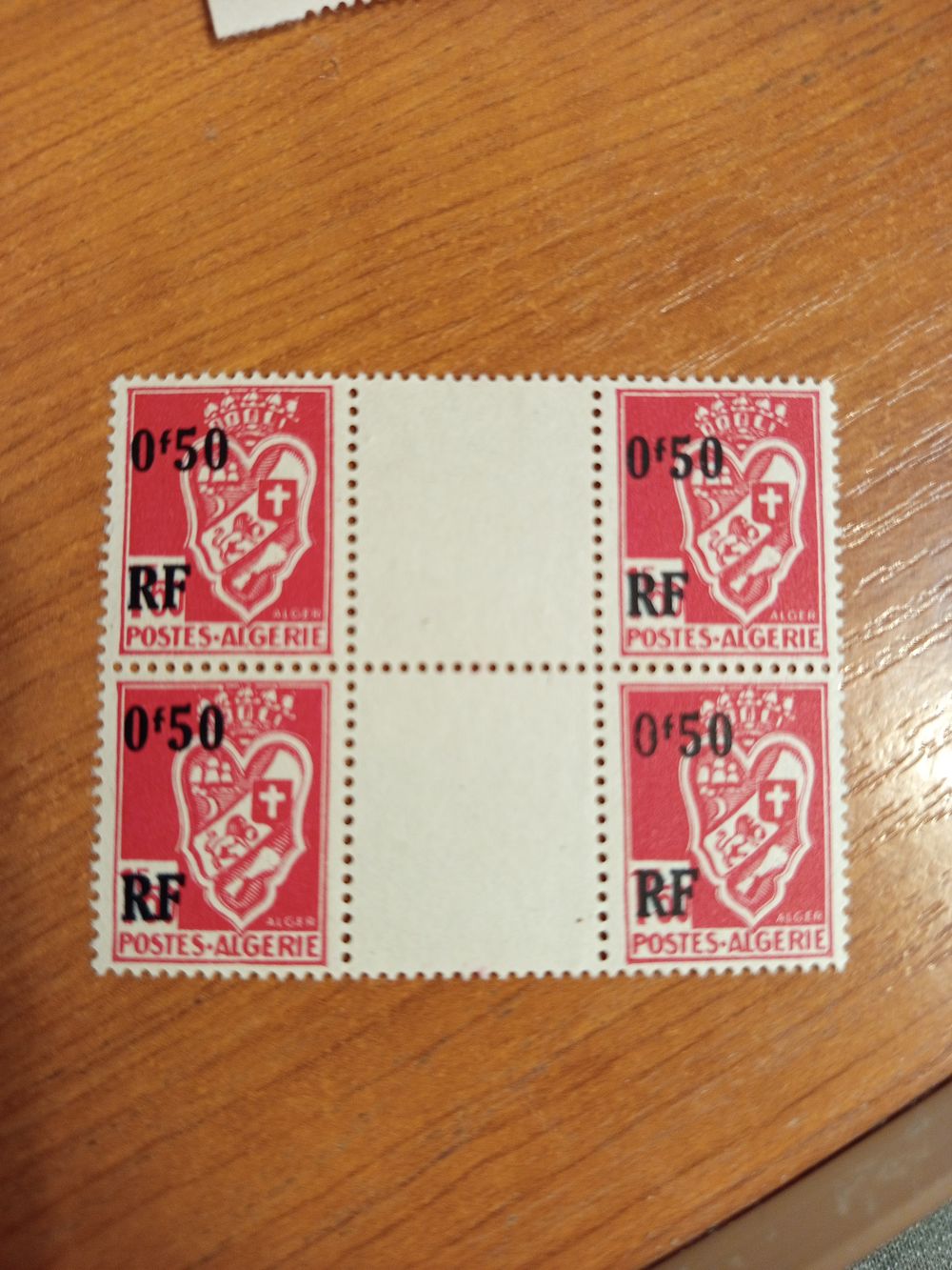Французская колония Алжир квартблок с купонами без клея без дыр герб (5-4)