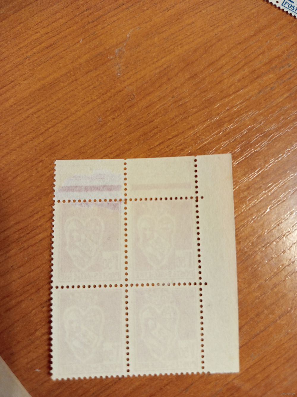 Французская колония Алжир квартблок с верхним полем без клея герб (5-7)