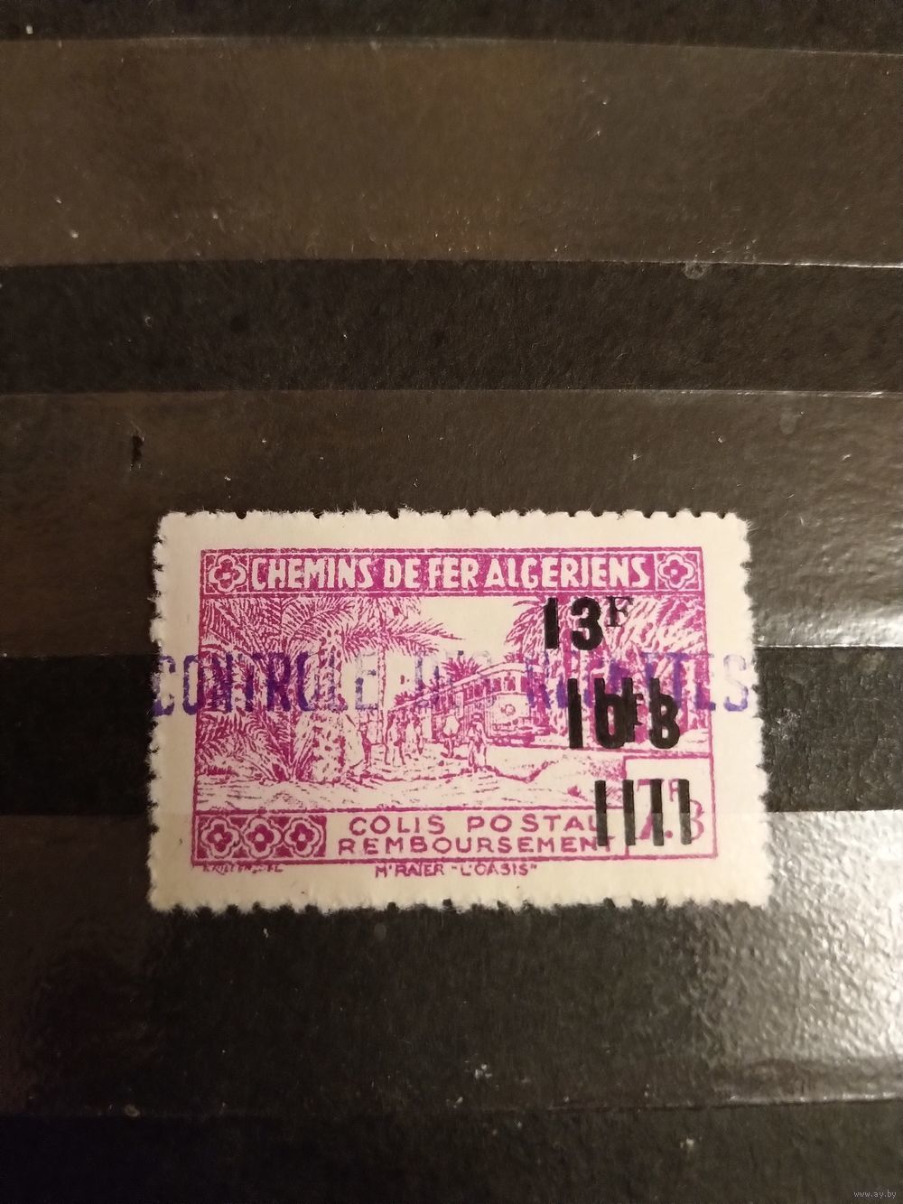 Французская колония Алжир марка оплаты посылок пакетов железная дорога чистая с фиолетовой контрольной надпечаткой MNH** (3-2)
