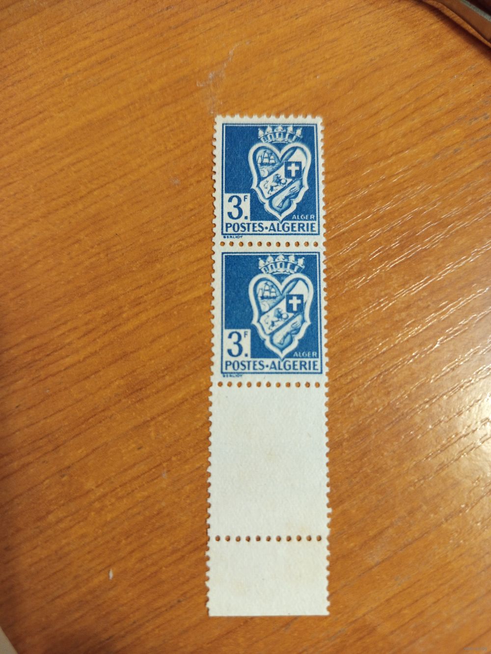 Французская колония Алжир пара марок одна с купоном без клея без дыр герб (5-2)