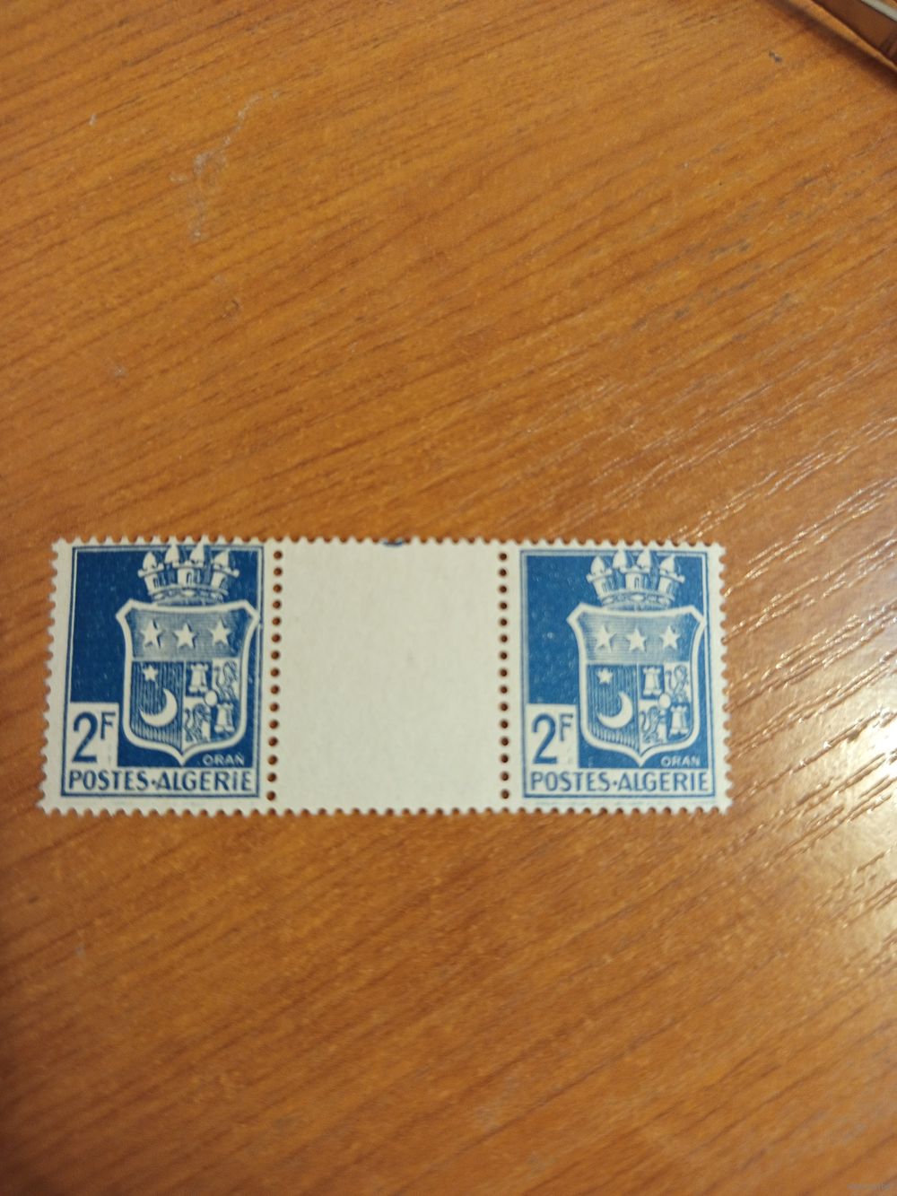 Французская колония Алжир пара с купоном без клея без дыр герб (5-7)