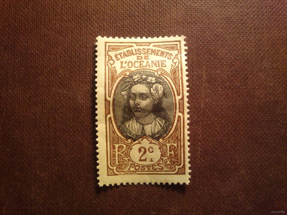 Французская Океания 1913 г.Портрет молодой таитянки Нохо Мерсье,сделанный на основе фотографий Анри Лемассона.Чистая с клеем .MH.