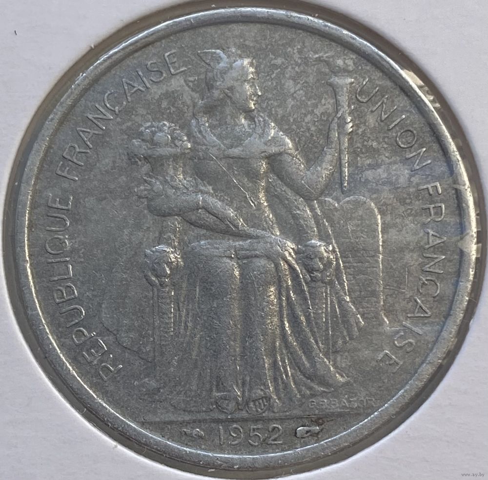 Французская Океания 5 франков 1952 г. В холдере