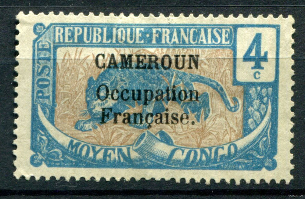 Французская оккупация Камеруна - 1916/17г. - леопард, 4 с - 1 марка - чистая, без клея [Mi 32]. #4-W1-115-A-1