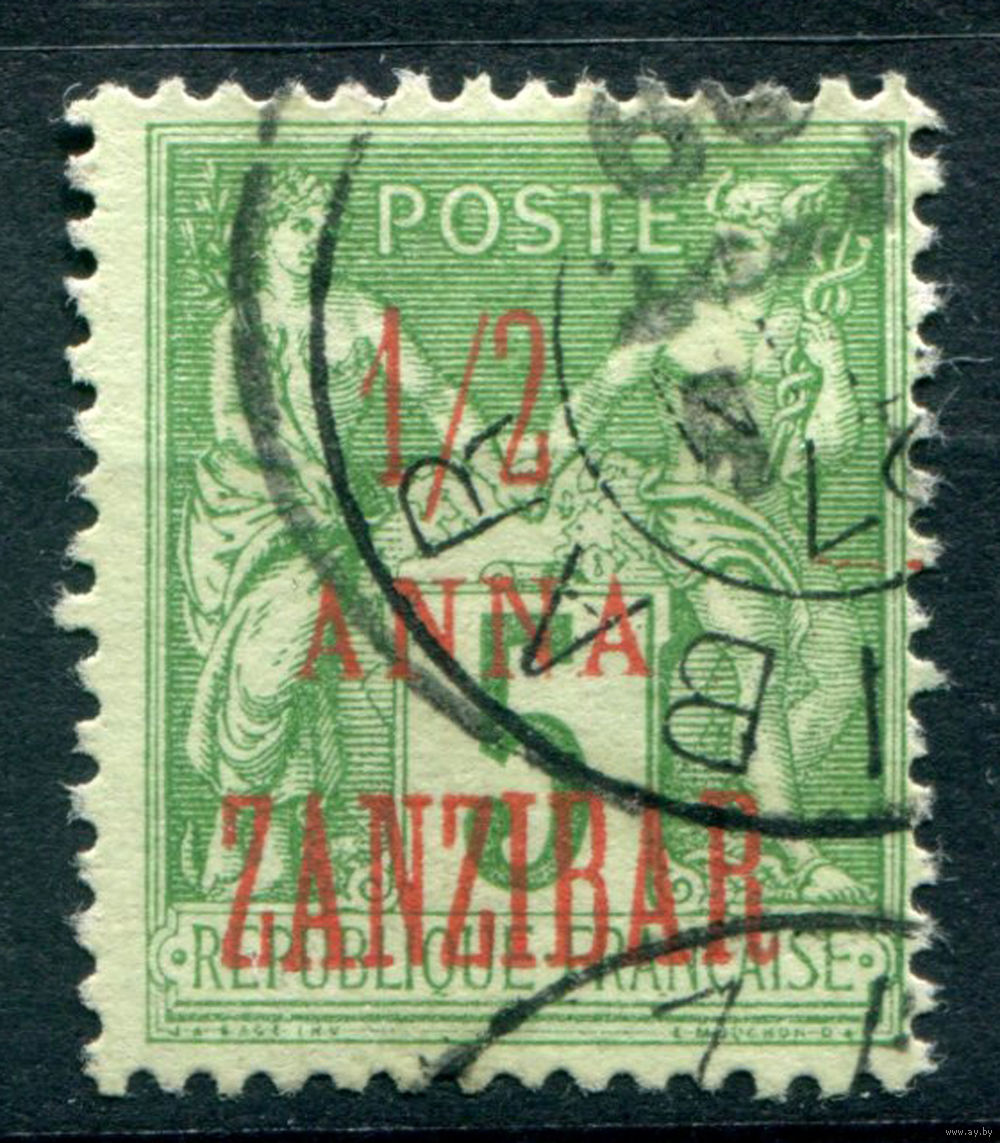 Французская почта в Занзибаре - 1897г. - аллегория, надпечатка Zanzibar 1/2 А на 5 с , гаш - 1 марка - гашёная [Mi 27]. #4-B5-106-A-1