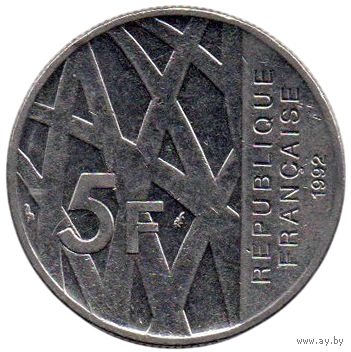 ФРАНЦУЗСКАЯ РЕСПУБЛИКА. 5 ФРАНКОВ 1992. 10 лет со дня смерти Пьера Мендеса-Франса