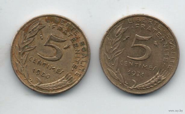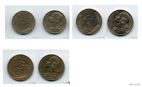 ФРАНЦУЗСКАЯ РЕСПУБЛИКА. 5 САНТИМОВ. ПОГОДОВКА. Цена за одну монету.